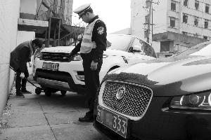 兩副相同的車牌從哪來的?據韓女士介紹,路虎車性能好,容易超速。為了違章不被處罰,並且挂個好看的“豹子號”,去年7月份,她以捷豹轎車號牌丟失為由,到車管所補辦了蘇M××333的車號牌,挂在路虎車上。韓女士認為,車牌和車型不符合,交警即便查到違章行駛,也不好處罰。