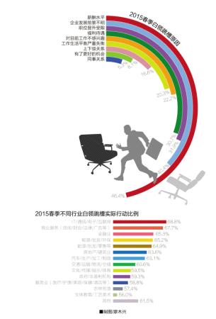 統計報告的相關負責人介紹,與2014年春季及秋季兩次調查的結果進行比較,2015年白領的跳槽意願明顯增強,不僅已經跳槽的白領比例增高,已經更新簡歷正在尋找新機會的白領也遠遠多于2014年。