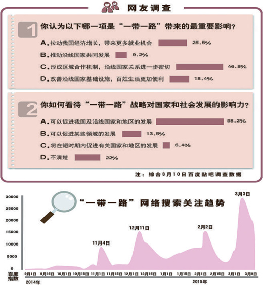 百度貼吧調查顯示,58.2%的受訪者認為,“一帶一路”“可以促進我國及沿線國家和地區的發展”,顯示著這樣一個戰略影響力之強。