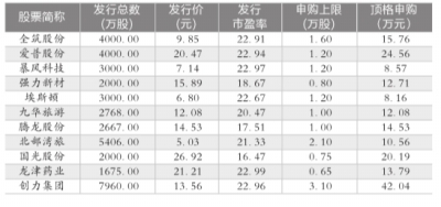 今天發行總數最少的為龍津藥業,此次發行總數為1675萬股,發行價為21.21元,頂格申購需要13.79萬元。