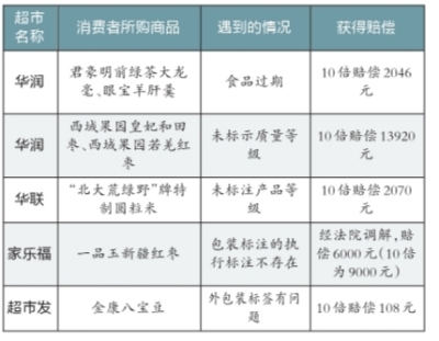日前,京華時報記者梳理了本市中院關于消費者因食品安全問題向超市索賠,並獲得10倍賠償的相關案例,發現出售過期商品和商品外包裝標注不準確是10倍賠償較多的“重災區”。