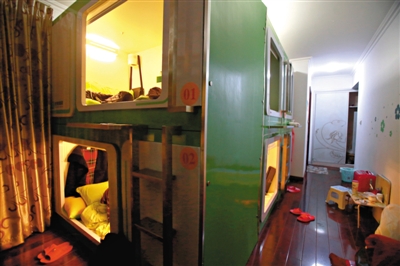 近日,有讀者向新京報爆料稱,北京出現一種新型旅館,名為膠囊公寓,實際上與群租房類似。隨後,記者走訪北京3家膠囊公寓發現,它們均開設在居民樓內,外部沒有招牌。走進公寓,一百六七十平米的房子會放置約20個“膠囊”,每個空間體積約為2.5立方米,收費從每天68元到89元不等。這些商家均不具備《營業執照》及《消防許可證》,也不能開具發票。