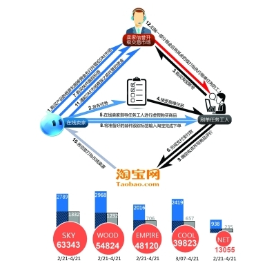 王海寧表示,淘寶是中國最大的在線商城,約有5億個登記用戶。2013年,在阿里巴巴上交易的總成交商品數量甚至超過了全球兩大知名電商亞馬遜和易趣的凈銷售量。淘寶的巨大成功也使得它成為執行刷單任務的“理想場所”。