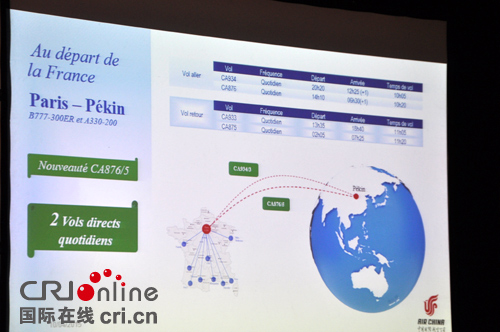 中國國際航空公司于4月10日在法國巴黎舉行新聞發布會,宣布今年6月1日起,國航每天在北京和巴黎間直飛的往返航班將從目前的1班增加至2班,以滿足中法間人員交流和往來日益密切的需求,並且隨著一些新航線的開通,國航航線網絡將覆蓋五大洲。