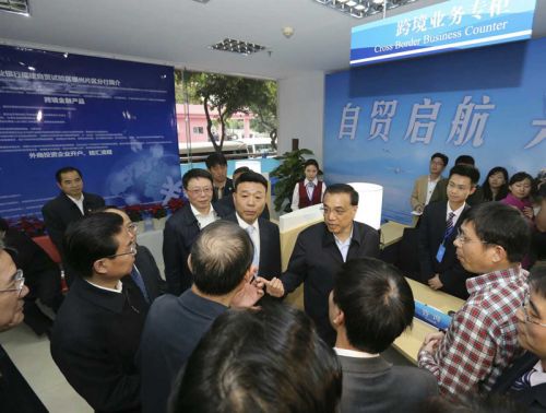 李克強23日考察興業銀行福建自貿試驗區福州片區支行,一位企業客戶告訴總理,在這里通過跨境金融業務向興業銀行香港分行貸款,加上手續費成本也不到4%。李克強說,設立自貿區的初衷就是用開放倒逼改革。要通過開放跨境金融業務,倒逼內地融資成本降低。