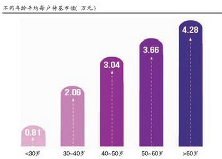 不過,事業剛起步的年輕人盡管人數佔上風,但持有基金凈值佔比在各年齡層中墊底,僅為11.48%;40到50歲人群持有基金凈值佔比最高,為28.91%,不過較2013年下降2.16個百分點。就戶均凈值來說,60歲以上人群最高,為4.28萬元;30歲以下人群繼續墊底,戶均凈值不足1萬元,約8100元。