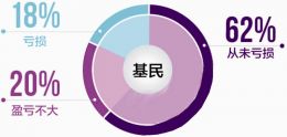或許不難看出,基民高存活率的背後有盈利支撐。數據表明,自投資以來有盈利的基民佔比高達62%,此外有20%的基民盈虧不大,也就是說虧損人群僅佔18%左右,幸福感可謂爆棚。