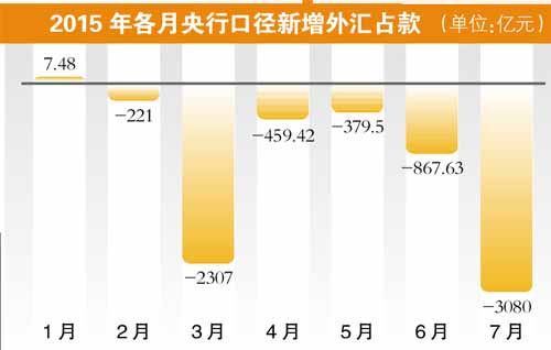 7月份外匯佔款雙下降,幅度之大遠超市場先前預期,反映了人民幣匯率雙向波動的背景下企業和個人結匯意願下降、轉為持有外匯資產的傾向上升。華夏銀行發展研究部戰略室負責人楊馳認為,8月中旬的人民幣匯率調整有可能進一步加劇這一趨勢,導致市場流動性有所縮緊。