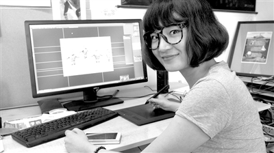 右圖為一位設計師在北京“十月動畫工坊”工作室展示電影《大聖歸來》的設計稿。記者 吳凱翔 攝