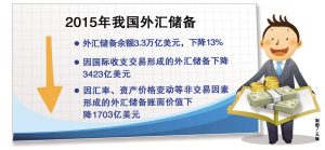 2015年末,我國外匯儲備余額3.3萬億美元,較上年末減少5127億美元,下降13%。其中,因國際收支交易形成的外匯儲備下降3423億美元,因匯率、資產價格變動等非交易因素形成的外匯儲備賬面價值下降1703億美元。國家外匯管理局新聞發言人2月4日在回答記者提問時表示,預計我國2016年國際收支狀況將基本平穩,我國經常賬戶順差局面沒有改變,外匯儲備依然充裕,抵禦跨境資本流動衝擊的能力較強。(雲 珠)