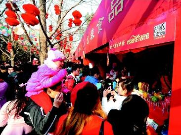 圖為遊客在北京地壇廟會購買年貨。 (記者陸愷攝)