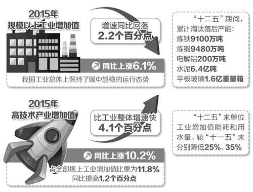 苗圩分析認為,2015年我國規模以上工業增加值增長6.1%,相對于前些年兩位數的增幅明顯回落,但6.1%的速度也不低,仍在工業運行的合理區間。