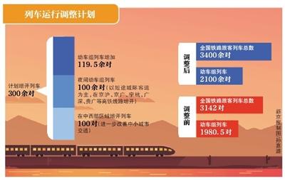 新京報訊 (記者郭超)記者從中國鐵路總公司(簡稱鐵總)獲悉,鐵總正組織對全國鐵路列車運行圖進行近年來最大范圍的調整,新運行圖計劃今年5月中旬實施。相關部門負責人表示,這次調圖不同于近年來多次在既有運行圖基礎上的微調,將對現行列車開行結構進行全面調整,大幅增開動車組列車。