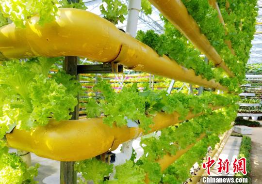 第十七屆中國(壽光)國際蔬菜科技博覽會展出的管道栽培可以直接食用的生菜。 浪子 攝