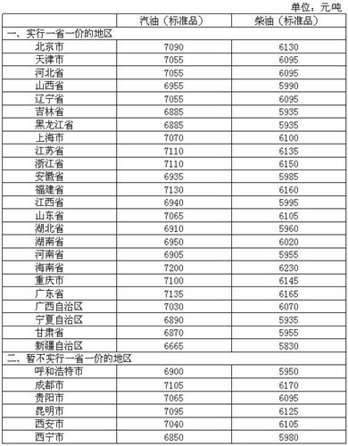 4月26日調價後,各省區市和中心城市汽、柴油最高零售價格表。來源:發改委官網