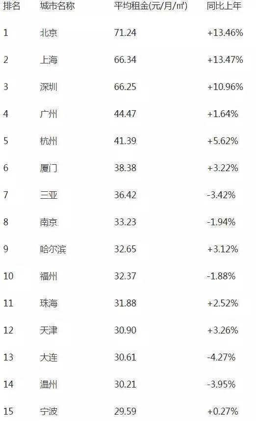在杭州之後,廈門和三亞兩座旅遊城市分列六、七位,這兩座城市目前的房價水平比較高,尤其是廈門,最近幾個月房價漲幅比較高,因此房租高企也屬正常。