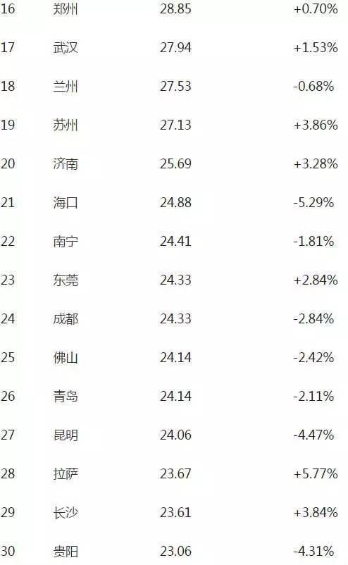 排第五的是浙江杭州,每平米月平均租金達到41.39元,基本與廣州在一個檔次,租金漲幅也達到了5.62%。這也說明,隨著這兩年杭州經濟的快速發展,進入杭州的年輕白領越來越多,房屋租金也水漲船高。