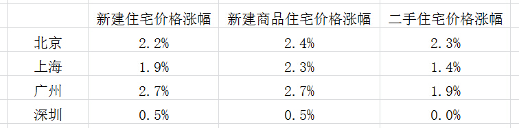 北上廣深房價環比上月繼續上漲,漲幅情況如下: