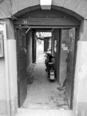 隨後,銷售人員帶領記者來到大耳胡同29號,推開小院大門,一條幽暗筆直的過道映入眼簾。“從大門口到一個門框處,就是在售過道。”他邊說邊比劃。記者目測這條過道寬1.5米,長約7米,兩側院牆上方蓋著一塊遮陽板,右側靠牆處停放著電動車、自行車。走進院子,記者發現院內居住著四戶人家,而過道是進出院子的必經之路。“您得想好了,您買的是過道,只能上學落戶,不能建房,也不能住人。”銷售人員特意強調。
