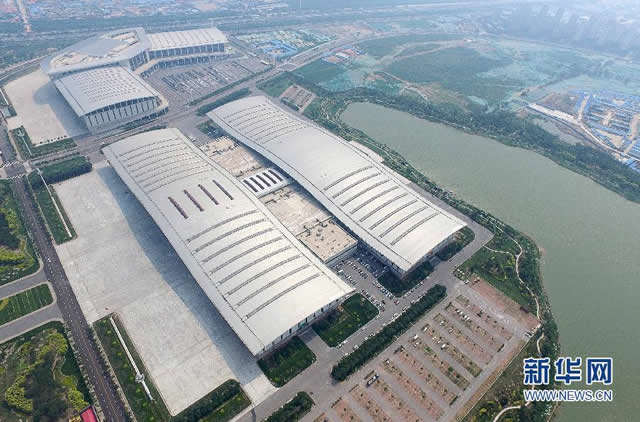 ↑這是航拍的天津梅江會展中心(6月22日攝)。新華社記者岳月偉攝