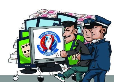 今年4月,公安部部署各地重點關注網絡賭球動態,強化線索搜集,注重專案經營,提前部署、重拳打擊歐洲杯期間的賭球犯罪活動。公安部有關部門負責人表示,隨著信息技術的迅猛發展,打擊跨境網絡賭博犯罪將是常態化的重要任務。漫畫/陶剛