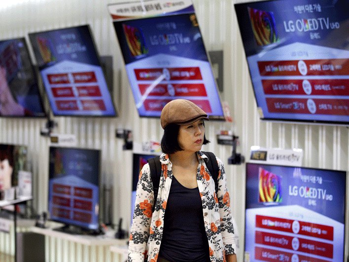 2015年7月23日,一名谷歌在挑選LG(韓國品牌)平板電視