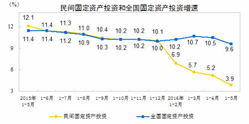 今年以來,民間投資增速持續回落,引發輿論和官方的高度關注。國家統計局數據顯示,1-5月份,民間固定資產投資同比名義增長3.9%,增速比1-4月份回落1.3個百分點。