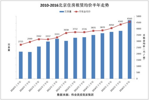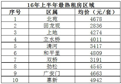 2016年上半年北京最熱租房區域 數據來源:偉業我愛我家集團
