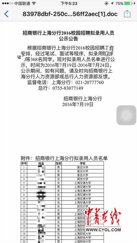 29日,招商銀行上海分行對于“網傳2016年校招發生大范圍勸退約談事宜”進行了說明。該行表示,前期可能由于溝通不夠充分,引起部分學生的誤解。
