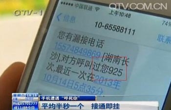 收到短信僅十幾分鐘後,來電顯示為“無主叫號碼”的電話就開始向江女士的手機接連不斷打入騷擾電話,持續了一天一夜,到昨日上午11點,江女士的手機共被騷擾300多次。“手機響個不停,客戶打不進來,我也打不出去,生意都做不成。”騷擾電話讓江女士困惑且氣憤。她說,當天本來有個客戶想買他們店中的一輛二手奧迪車,就因為接連不斷的騷擾電話,這單大生意就這麼攪黃了。