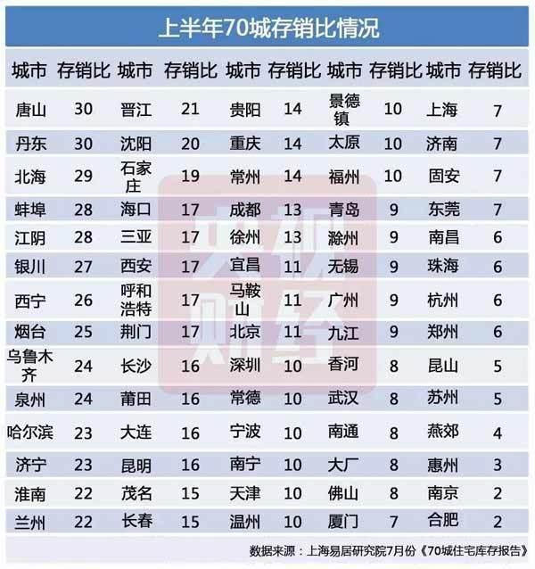 記者查閱上海易居房地產研究院提供的7月份《70城住宅庫存報告》發現,上述城市中部分城市住宅庫存並不低。按照上半年市場消化速度,烏魯木齊、哈爾濱庫存分別可賣24月、23個月。而市場一般認為較為合理的情況是14個月左右。
