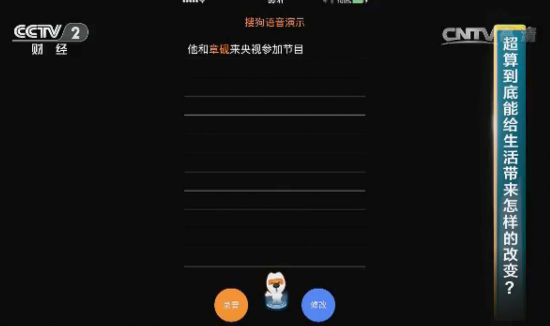 節目互動中,王小川邀請現場觀眾體驗了搜狗輸入法“語音輸入”和“語音修改”的兩大功能,演示了搜狗在語音識別領域獲得的突破。使用語音輸入時,係統實時識別了觀眾所說的內容,並快速將其轉換成了文字;而在進行語音修改時,觀眾僅需使用自然語言告訴機器“將弓長張改為立早章”、“不是‘參加’是‘錄制’”或者“刪掉前兩個字”等,係統就能快速理解並對之前輸入的文本進行修改,精準效果獲得了現場觀眾的陣陣掌聲。