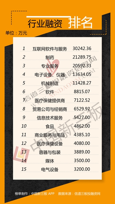 6行業融資規模超億元 互聯網軟件業融資逾3億元