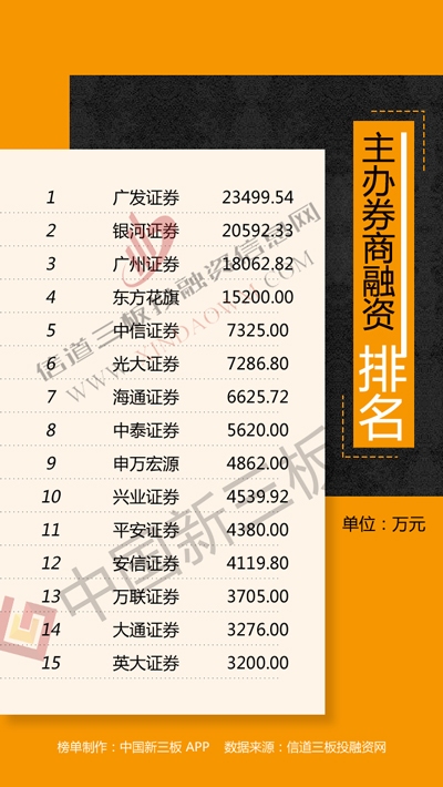 主辦券商排名方面,共有4家券商主辦企業融資過億元,其中廣發證券以2.35億元企業融資排在第一位,其次是銀河證券2.06億元,廣州證券1.80億元和東方花旗1.52億元。