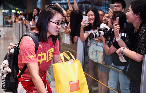 中國遊泳隊部分隊員于昨天清晨抵達首都機場,受到了近千名粉絲的瘋狂圍堵,場面甚至一度失控。在人氣最高的隊員當中,孫楊是直接轉機回杭州,“洪荒少女”傅園慧以及寧澤濤則是要出機場返回體育總局駐地,只好面對“狂風暴雨”的洗禮。傅爺說她看到機場內的熱鬧場面真的被嚇到了,此前從未經歷過。不過她又說,“還好大部分人都是奔著寧澤濤去的,這讓我感到很欣慰”。