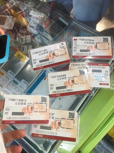 記者上前問有無170、171號段的手機號出售?攤位老板爽快回應“有”。他向記者介紹,這種卡全國各地打電話一毛多一分鐘,接聽免費,特便宜。“只有170號段,171賣得不好就沒賣。”隨後老板從櫃邊隨手拿出一打手機卡,扔在櫃面上,6張,標著北京聯通。號碼全是170打頭,未拆封。