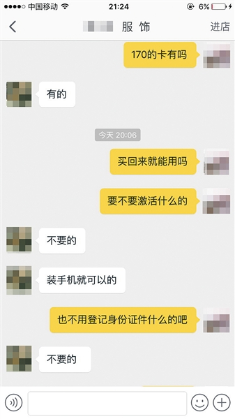 此外,記者在淘寶網查詢“170手機卡”關鍵字,隨即彈出數十家售卡商家。記者隨即聯係了其中的3家,其中兩家表示“購卡後需要向淘寶上傳身份驗證照片才能激活使用。