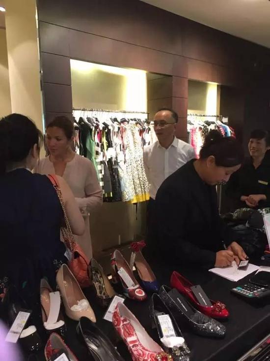 15:35 總理夫人一行人來到AB座2樓連廊處的名品買手店專櫃。總理夫人試穿了一件DOLCE&GABBANA品牌的晚禮服,感到滿意,以3000元的價格購買。