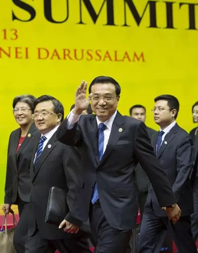 2013年10月9日,李克強在斯里巴加灣市出席第16次中國-東盟(10+1)領導人會議並發表講話。李克強指出,沒有安全的環境,經濟繁榮就難以維係;沒有相互的信任,互利合作也難以深化。中國將一如既往奉行與鄰為善、以鄰為伴的周邊外交方針;一如既往堅持相互尊重、平等相待、通過友好協商和對話化解分歧;一如既往支持東盟在東亞合作中的主導地位。我們願與東盟有福同享,有難同當,共同成長。如果說中國和東盟互為“經”、“緯”,互信就是“梭”,經緯緊密交織,才能織就未來合作的壯麗錦繡。