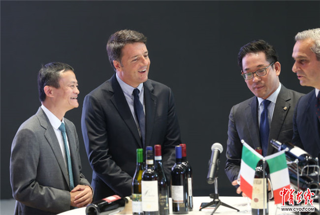 今年4月11日,馬雲在參加意大利酒展期間,與倫齊共同宣布將在今年9月9日開啟首屆天貓全球酒水節,兩人當時還“喊話”在座的意大利紅酒生產商,要在阿里巴巴這個全球最大的電商平臺上一起改變世界。