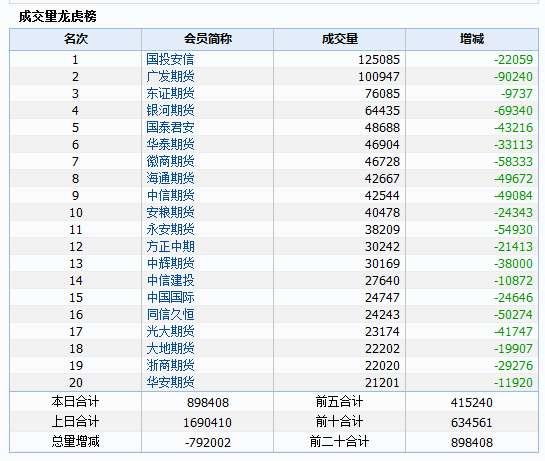 以鐵礦石為例,澎湃新聞記者發現,排名前20的期貨公司成交量竟然無一例外地在縮水,當日累計減少79萬手,相比前一個交易日近乎“腰斬”。