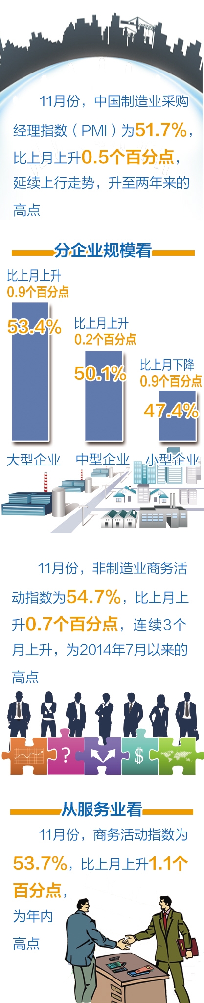 PMI回升顯示生產和需求轉暖,市場預期改善。PMI指數11月份繼續提高,並已連續4個月保持在榮枯線以上,經濟增長趨穩向好的基礎進一步夯實。專家認為,四季度經濟企穩態勢將進一步鞏固,預計全年能實現經濟增長預期目標——