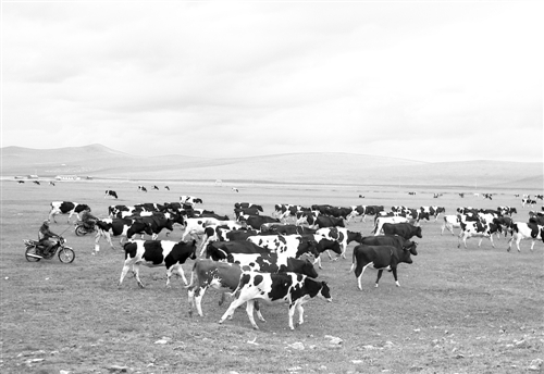 地處呼倫貝爾大草原的海拉爾農墾(集團)有限責任公司員工騎著摩托車放牧。 經濟日報記者 黃俊毅攝