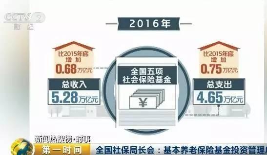 人社部數據顯示,2016年,全國五項社會保險基金總收入為5.28 萬億元,總支出為4.65 萬億元,分別比2015年底增加0.68萬億元、0.75萬億元。