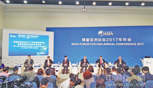 在博鰲亞洲論壇2017年年會新聞發布會暨博鰲亞洲論壇學術發布會上,與會嘉賓正在發言。經濟日報記者 徐惠喜攝