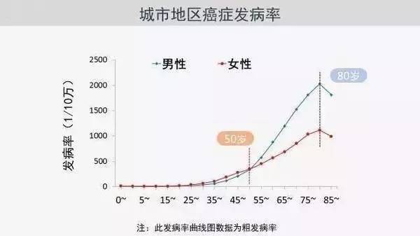 第一:據統計,癌症從40歲之後發病率快速提升,80歲時達到高峰。