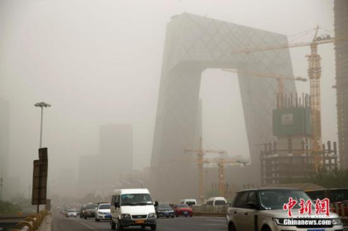 5月4日,北京城區遭沙塵籠罩。中新網記者 金碩 攝