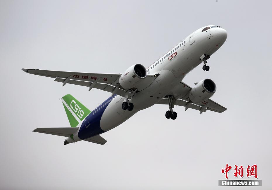 5月5日下午2時許,首架國產大飛機C919在上海浦東機場4號跑道成功起飛。根據計劃C919首飛時間在90分鐘左右,試飛員將首次評述飛機的操穩特性、起飛著陸性能、動力裝置和駕駛設備等工作情況。楊俊 攝