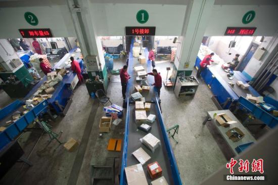 大量快遞包裹涌入郵局,使得業務量暴增。張雲 攝