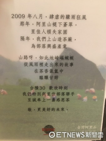 2009年8月,莫拉克風災造成阿里山鄉受創嚴重,臺積電開始參與部落重建工作,協助造茶廠,這回特別拿來當作三十周年慶伴手禮,除了禮尚往來同時也邊做公益。(中國臺灣網 王怡然)